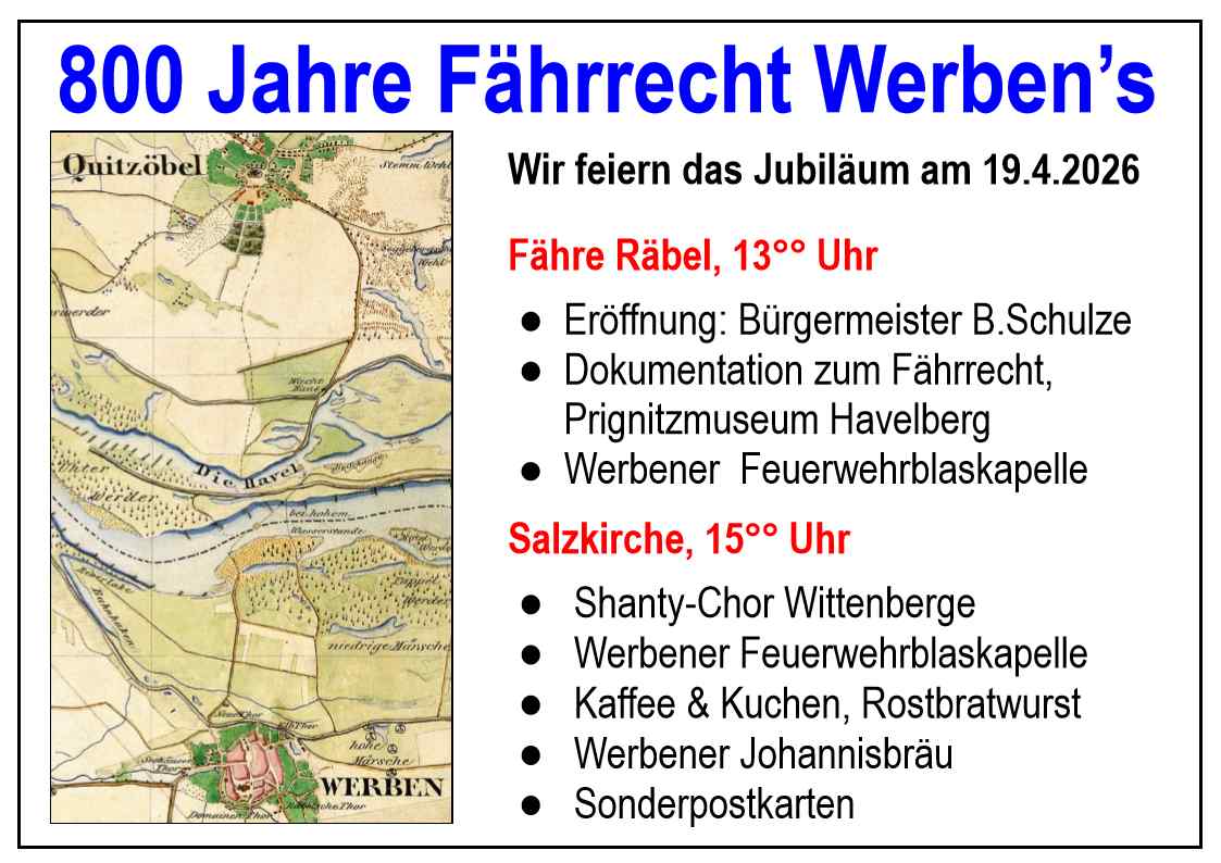 Beginn 13 Uhr an der Fähre in Räbel, anschließend Kaffeetrinken und Grillen an der Salzkirche in Werben.